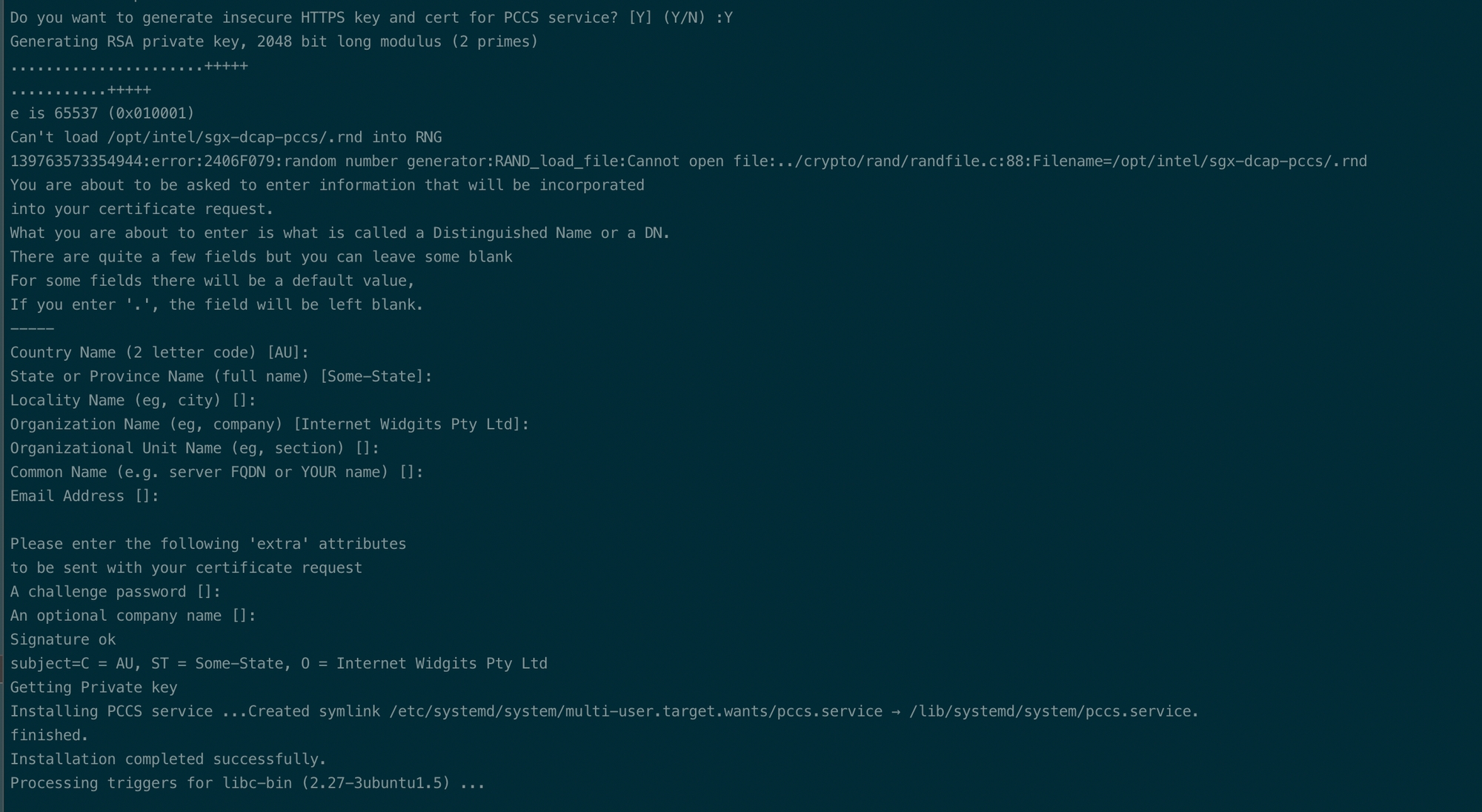 sudo apt install -y sgx-dcap-pccs libsgx-dcap-default-qpl