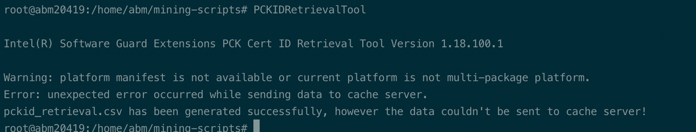 Once SGX registration is successful, you can start the CRVA processes. However, due to data caching, you may encounter the following error message upon the first attempt: